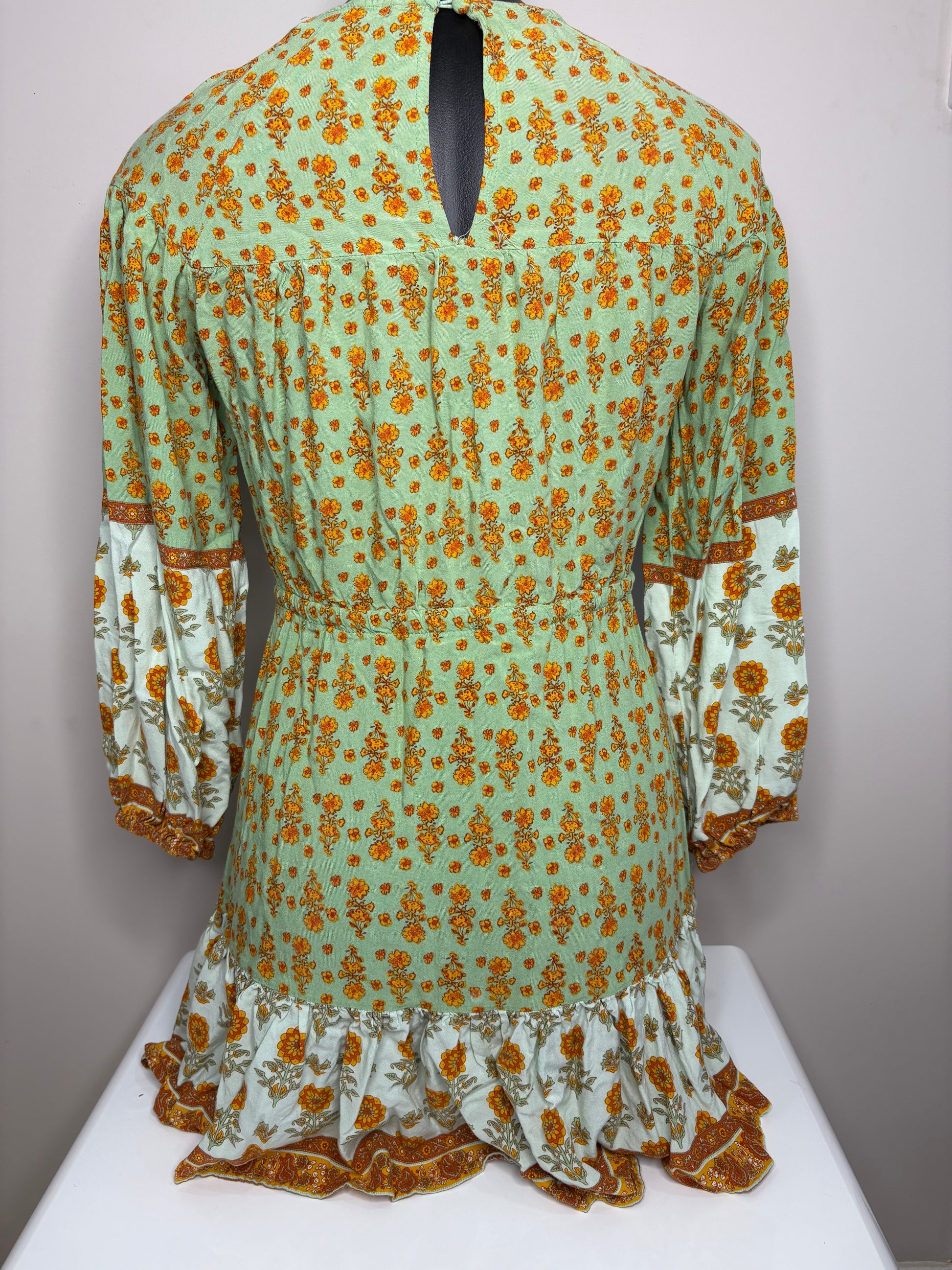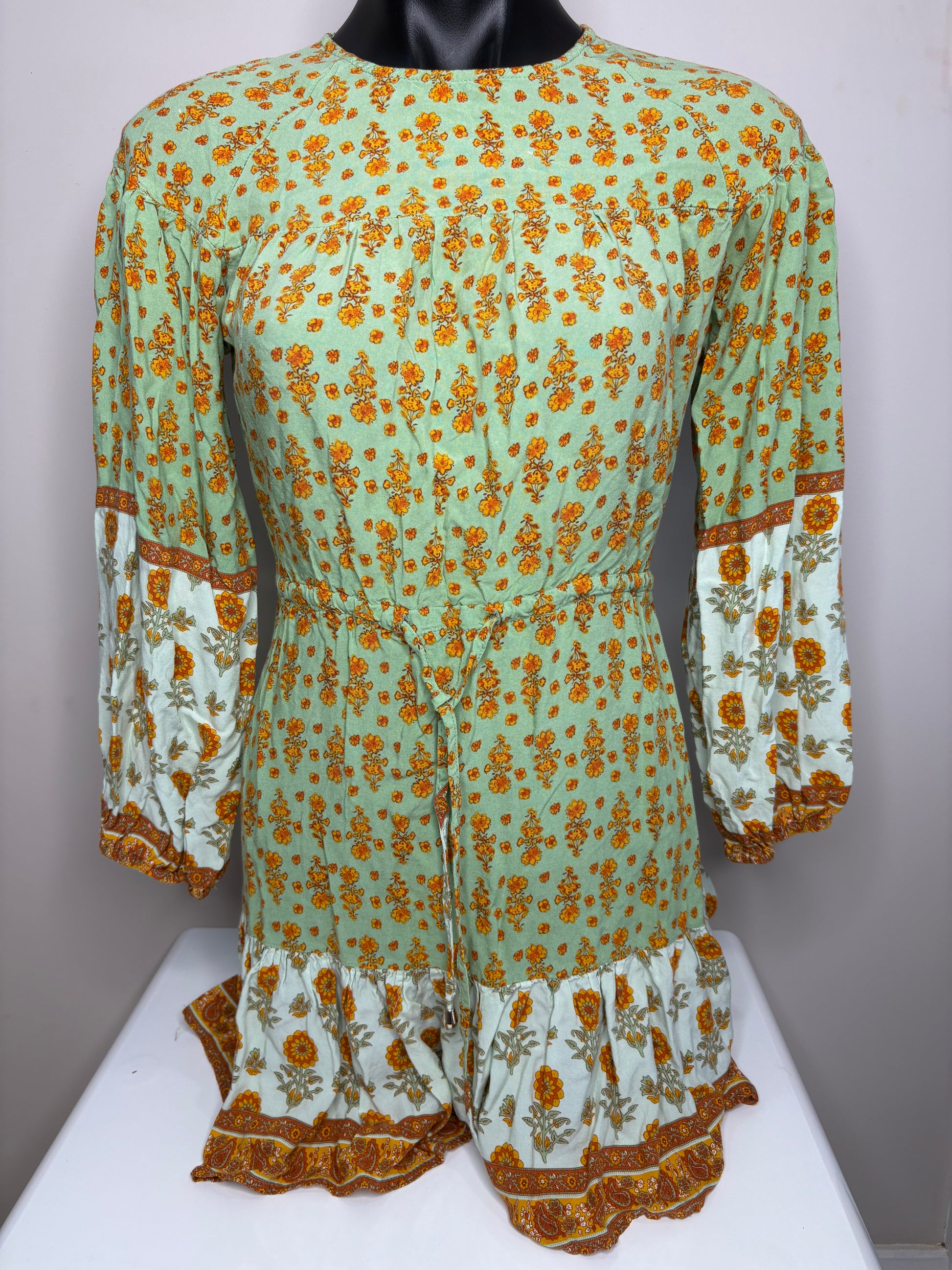This elegant piece features a flattering skater silhouette and delicate long sleeves, blending bohemian charm with refined style.