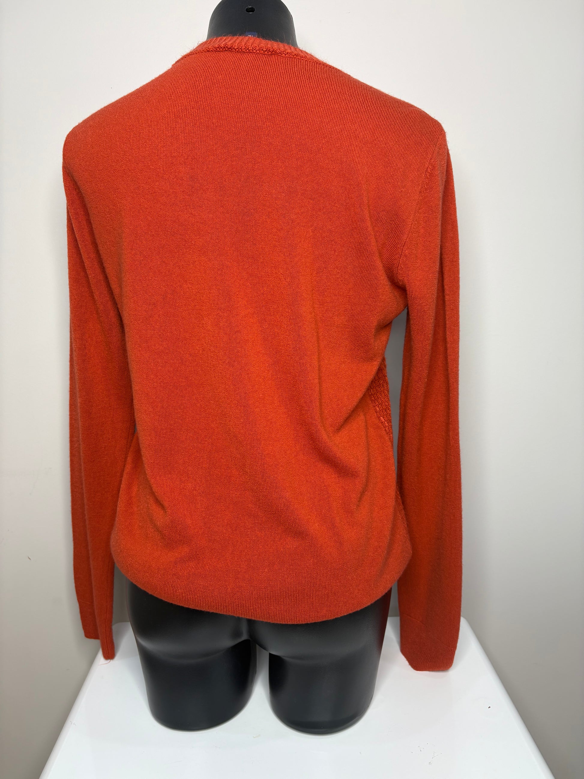 Its rich burnt orange hue and fine knit fabric provide both comfort and a polished appearance, making it an ideal piece for layering or standing out with understated sophistication.