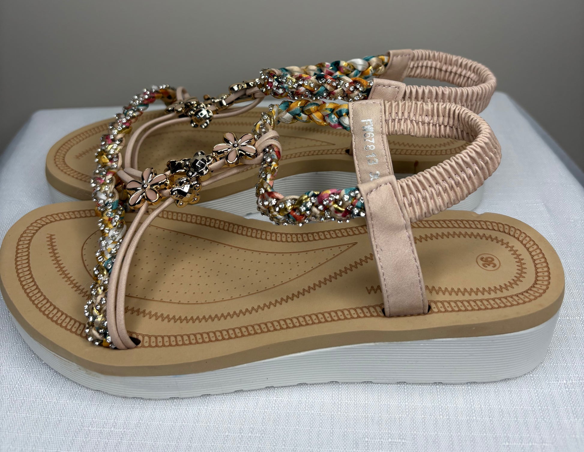 Elevate your style with the Pink Jewel Sandals, designed to blend elegance and comfort seamlessly.