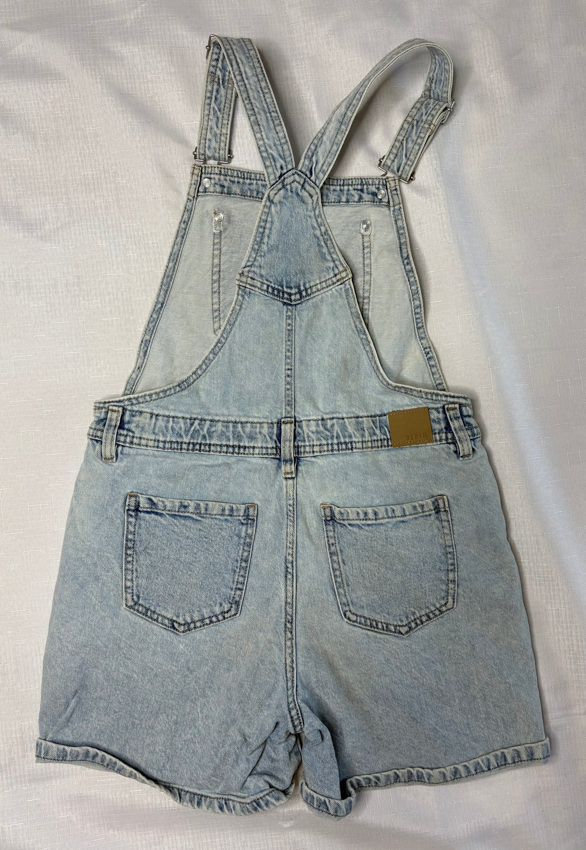 These playful light wash denim short overalls bring a fun, casual vibe to your wardrobe.
