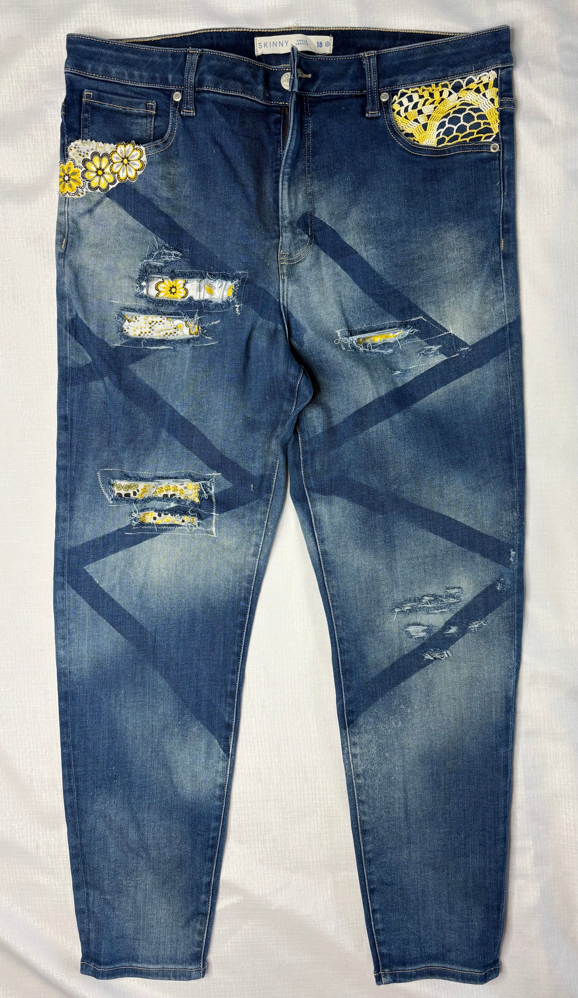 These upcycled skinny jeans combine sustainable fashion with a tailored fit.
